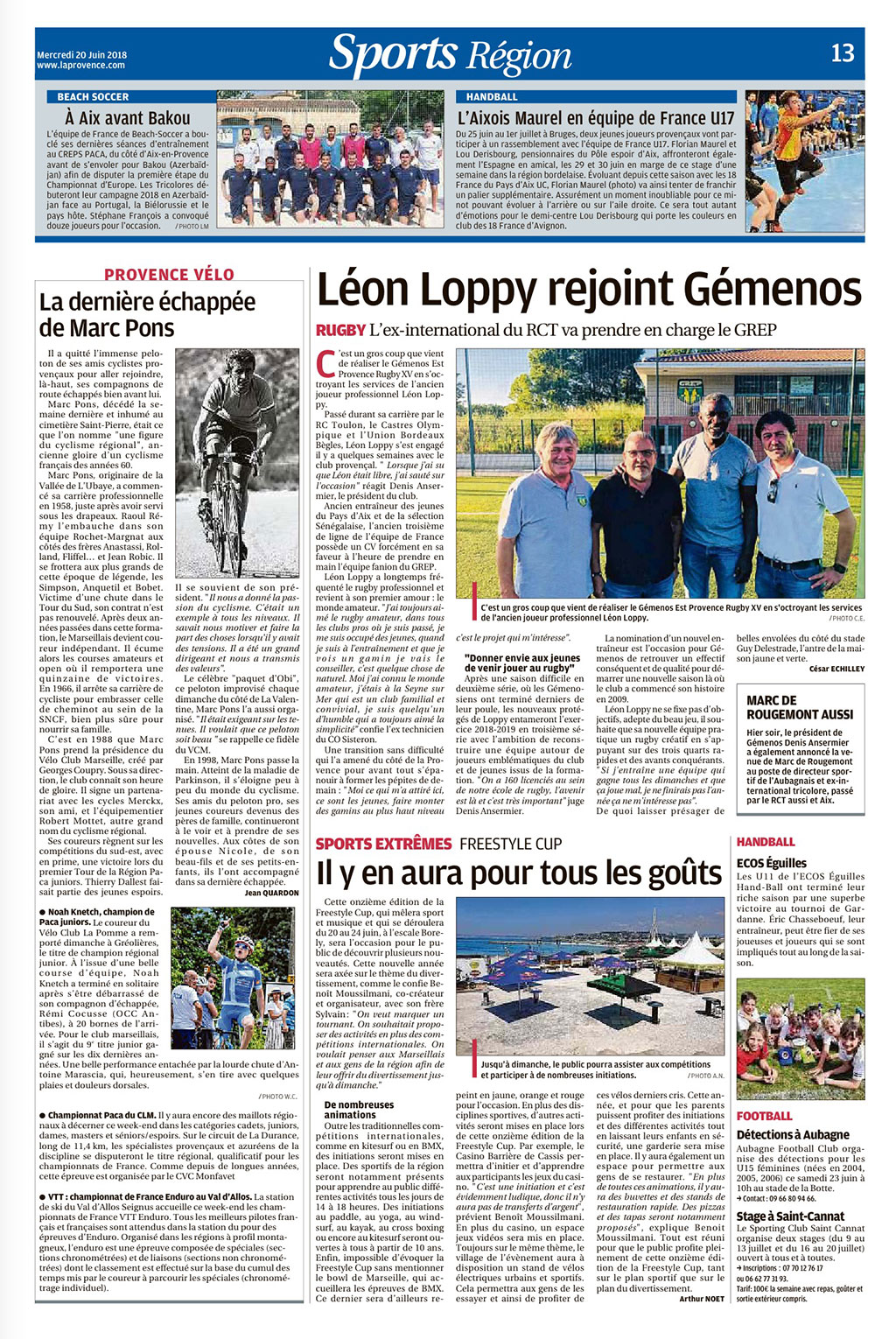 La presse du jour fait écho aux dernières et très belles nouvelles de notre club.